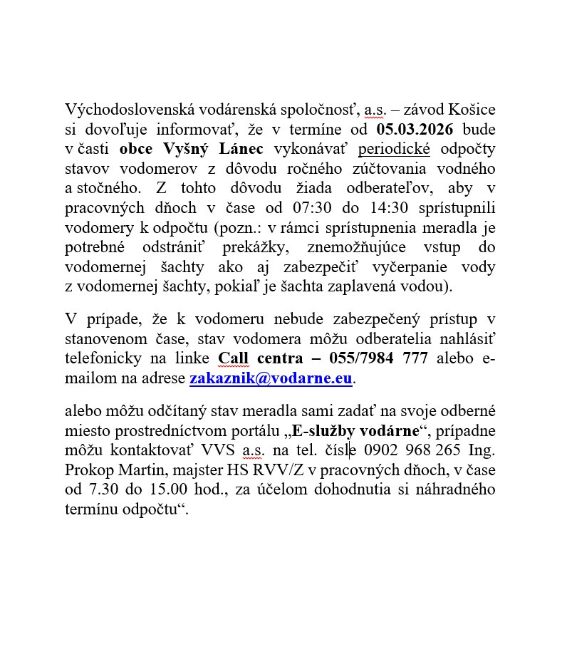 Odpočet stavov vodomerov vo Vyšnom Lánci